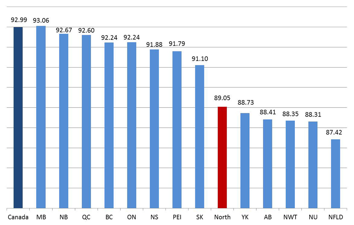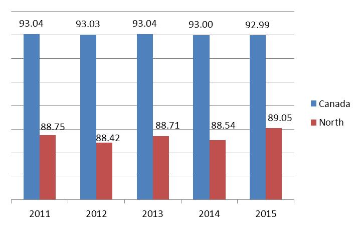 • In 2011, the index for the North was 88.75 and 93.04 for Canada.