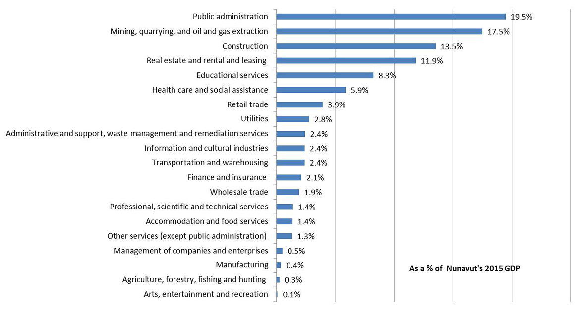Text description: This graph shows the contribution of Nunavut industry sectors as a percentage of total 2015 GDP.