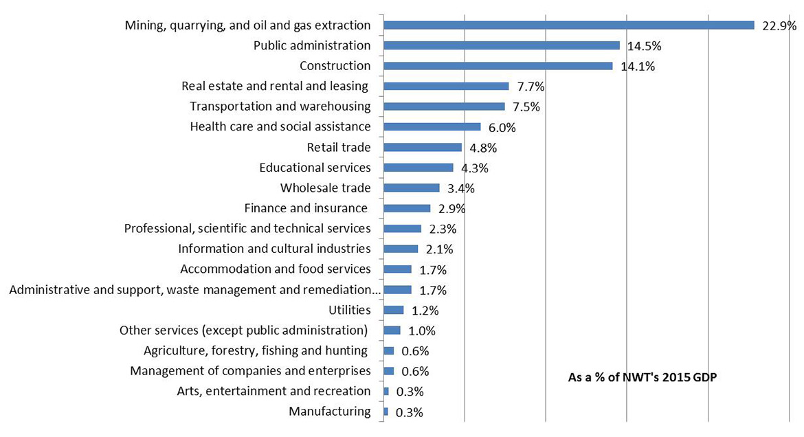 Text description: This graph shows the contribution of Northwest Territories industry sectors as a percentage of total 2015 GDP.