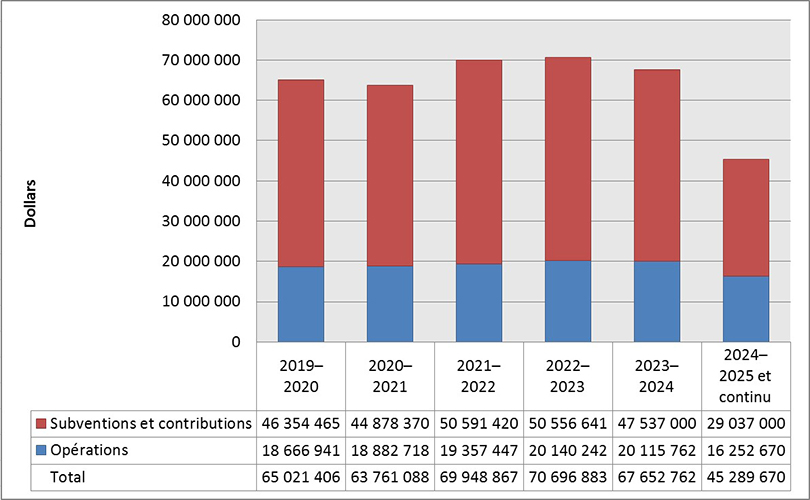 | Subventions et contributions | 46 354 465 | 44 878 370 | 50 591 420 | 50 556 641 | 47 537 000 | 29 037 000 |