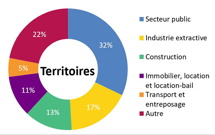 Près de la moitié du PIB des territoires provient de la fonction publique et des industries extractives (mines).
