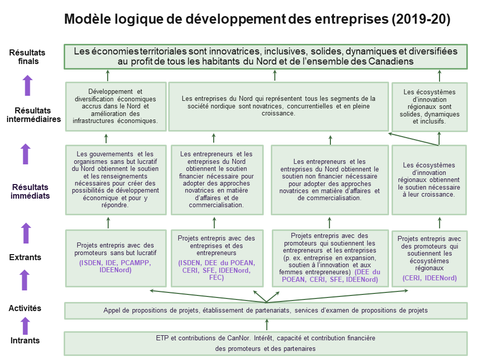 Diagramme du modèle logique pour les programmes de développement des entreprises à CanNor, élaboré en 2019-2020.